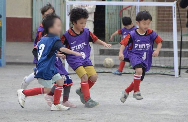 総勢約60名のキッズたちが集まり、軽く汗が浮いてくるくらいの陽気の中、オニごっこ、ドリブルゲーム、シュート練習等を行った後は、6チームに分かれて試合を行い、思いっきりボールを追いかけました。